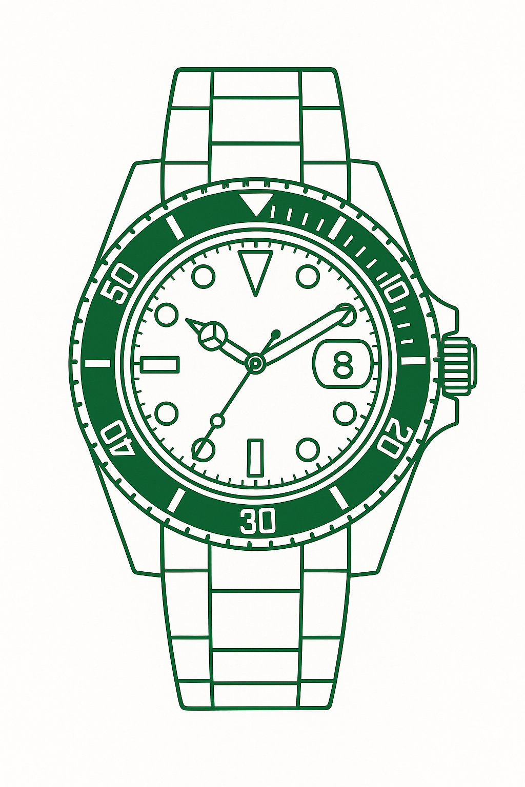 A deep green bezel that evokes the richness of roasted beans and the quiet ritual of a morning pour. Time here feels like a slow, deliberate sip: bold, smooth, and unmistakably distinctive.