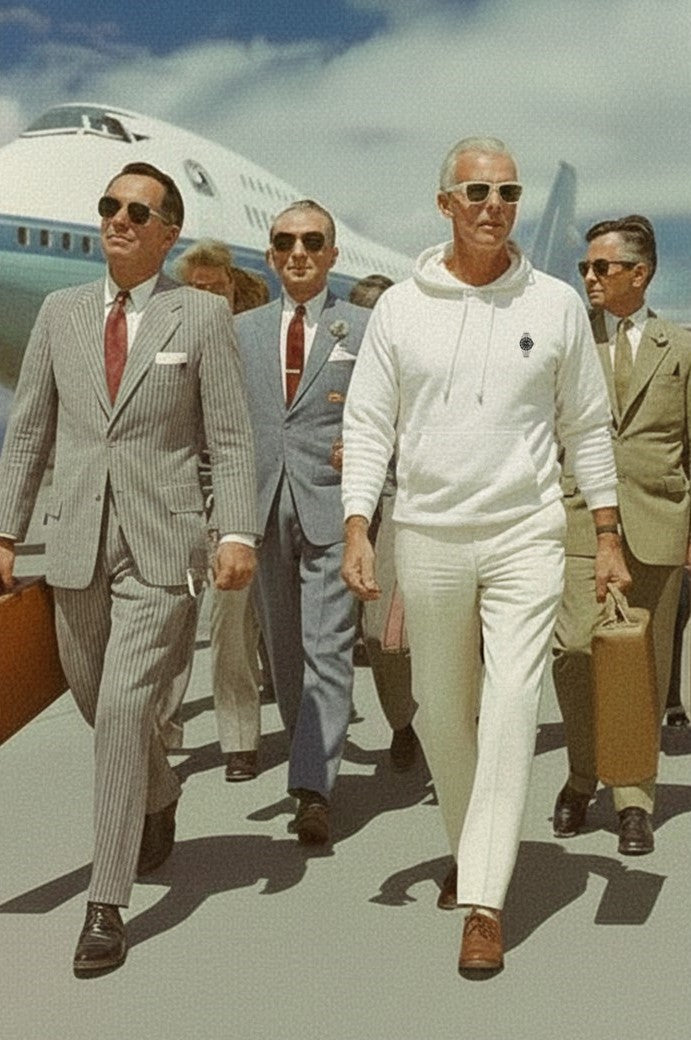 A monochrome confidence built for cabins, lounges, and the hush between departures. Dual time clicks like a boarding call: quiet, composed, and always aligned with those who cross skies and meetings in a single breath.